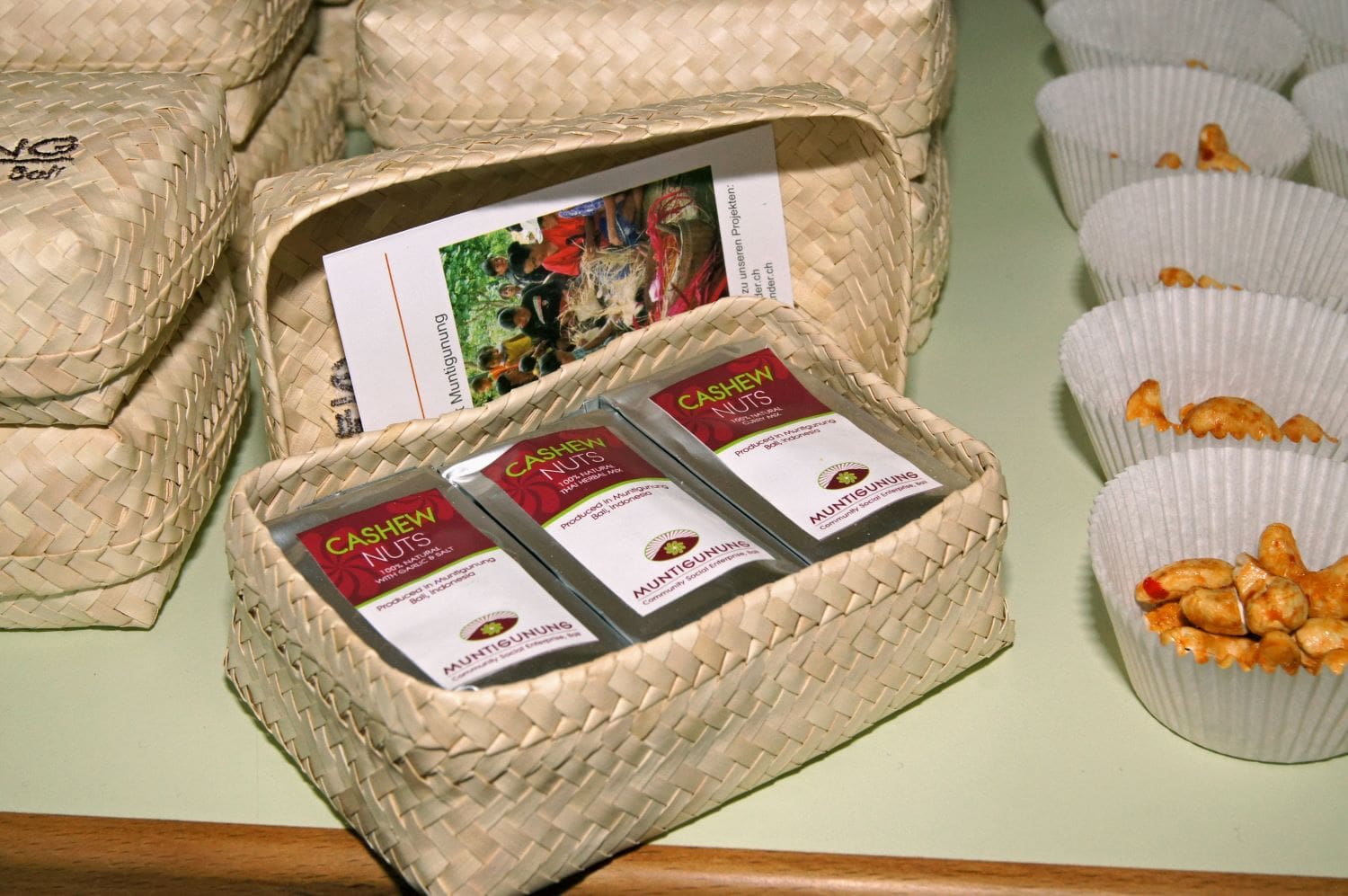 Since 2009, the leaves of this versatile palm tree have been harvested and crafted into beautiful baskets by our highly skilled women and men in our production space under the large roof of one of our communal water tanks, which is part of the water scarcity solution project in Muntigunung.